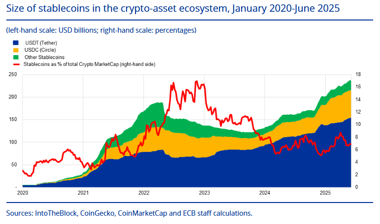 Αυτά τα stablecoins, τα οποία είναι tokens (ψηφιακά διακριτικά) που υποστηρίζονται από κρατικά νομίσματα (fiat), αποτελούν σοβαρό κίνδυνο τόσο για την νομισματική κυριαρχία των κρατών όσο και για το «κοινό αγαθό» του χρήματος.