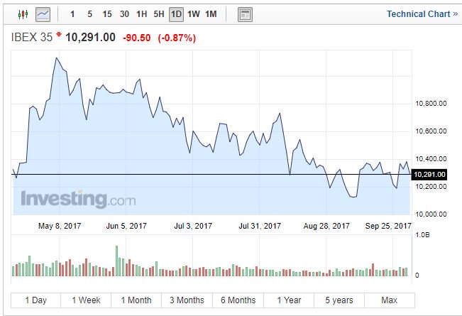 Πιέσεις δέχεται το χρηματιστήριο της Μαδρίτης, στον απόηχο του δημοψηφίσματος στην Καταλονία, με τις τράπεζες να πρωταγωνιστούν αρνητικά.