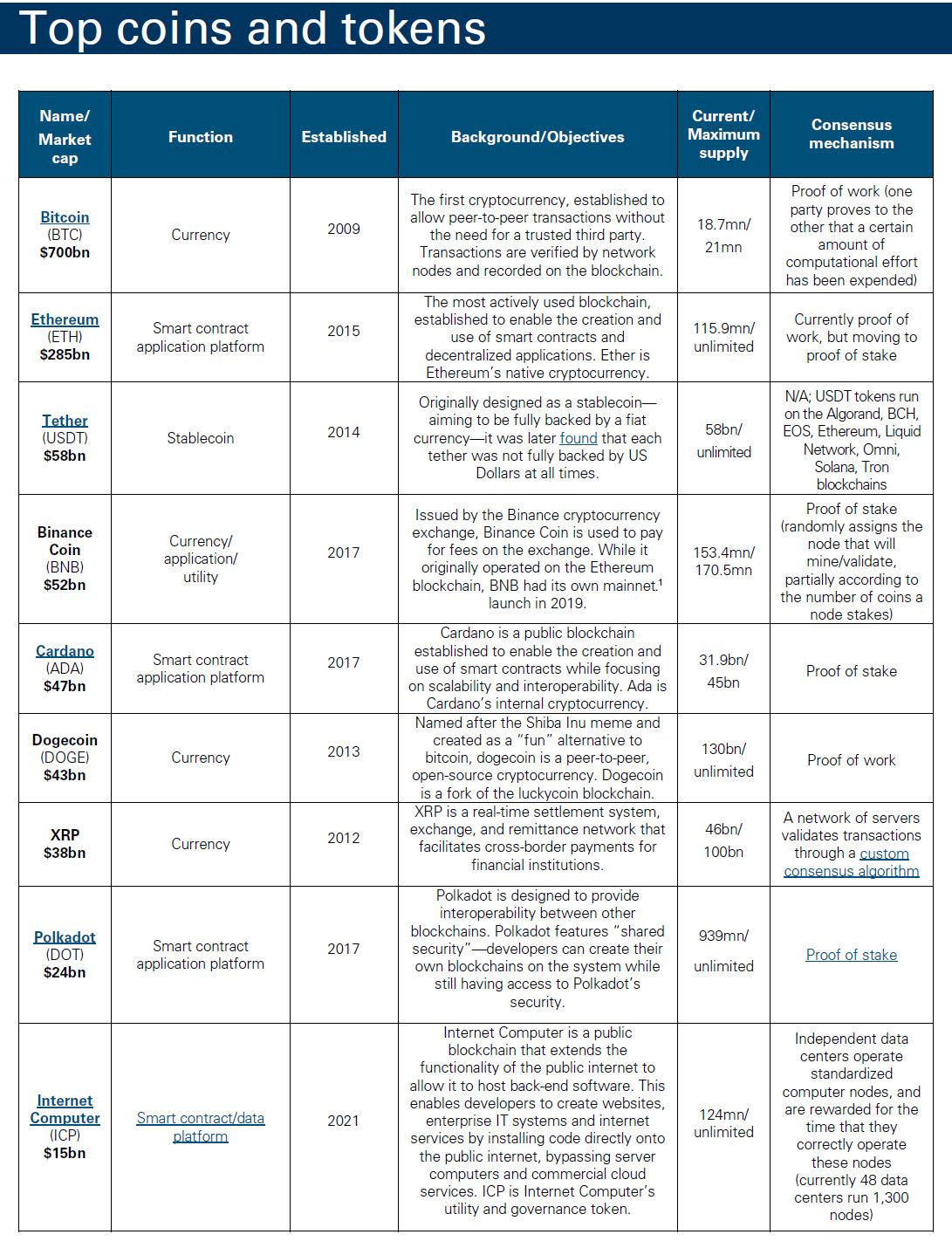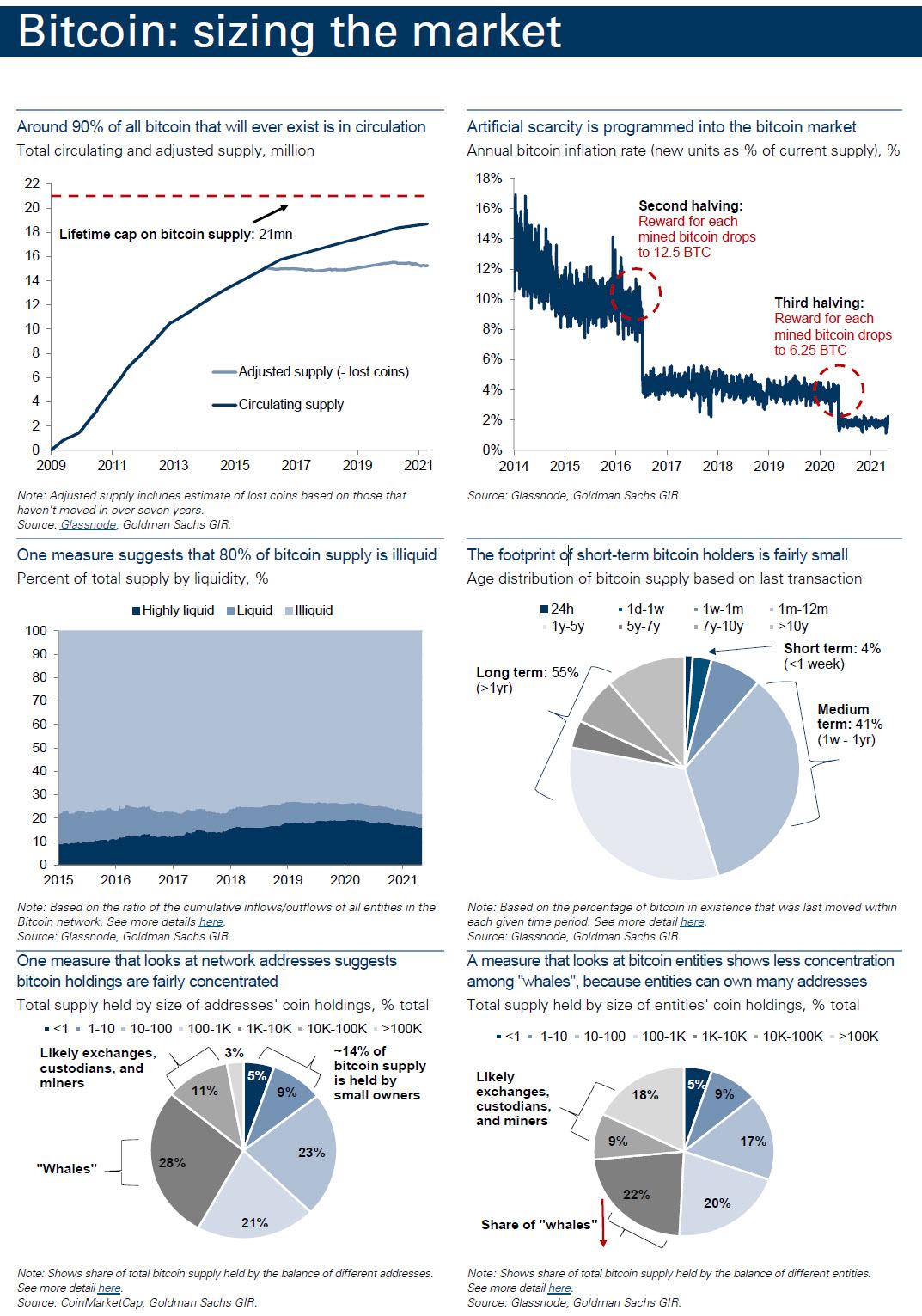 Κατά την Goldman Sachs τα κρυπτονομίσματα είναι μια νέα κατηγορία περιουσιακών στοιχείων που αντλούν την αξία τους από τις πληροφορίες που επαληθεύονται και το μέγεθος και την ανάπτυξη των δικτύων τους.