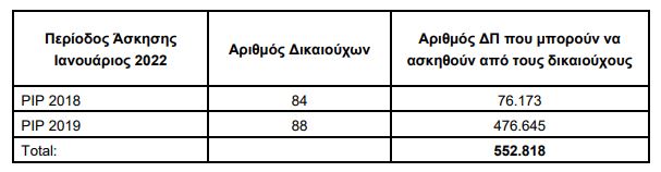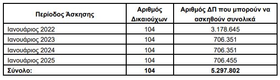 α) συνολικά 5.297.802 Δικαιώματα Προαίρεσης να χορηγηθούν και να αποδοθούν σε 104 δικαιούχους (εφεξής οι «Δικαιούχοι»), στο πλαίσιο του προαναφερθέντος Προγράμματος Παροχής Κινήτρου Απόδοσης - PIP του 2020 και ειδικότερα, δεδομένου ότι σύμφωνα με τον Κανονισμό, κάθε ένα από τα χορηγηθέντα Δικαιώματα Προαίρεσης αντιστοιχεί σε μία (1) Νέα Μετοχή, δηλαδή σε περίπτωση άσκησης όλων των Δικαιωμάτων Προαίρεσης, να εκδοθούν συνολικά έως και 5.297.802 νέες κοινές, ονομαστικές, άυλες μετοχές της Εκδότριας, αριθμός που αντιστοιχεί στο 0,2% του καταβεβλημένου μετοχικού του κεφαλαίου, ονομαστικής αξίας 0,30 ευρώ η κάθε μία,